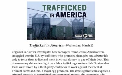 Franciscan Peace Center Movies That Matter: Trafficked in America Investigating how a group of teenagers from Guatemala were forced to…