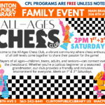 Wednesday, 3:30 pm – 4:30 pm Kids (6-11) In Person Children (Ages 6-11) Youth Dept (Lobby) Clinton Public Library 306 8th Ave S Clinton IA 52732 Join us for an afternoon of play and learning! The Creative Explorers (formerly Afternoon Adventures) program offers a space for children to create, explore, and discover. Through fun and […]
