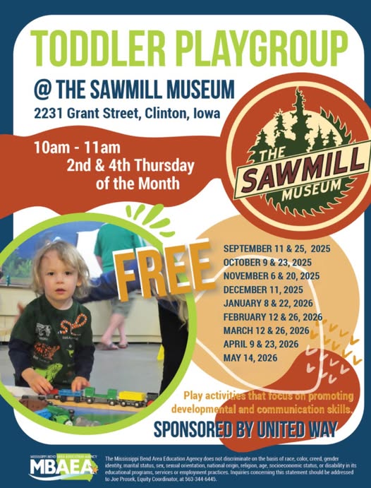 Toddler Playgroup January 14, 2026 Paul Dymkowski Event Details This event is running from 8 January 2026 until 14 May 2026. It is next occurring on March 12, 2026 10:00 AM Venue: Sawmill Museum Categories: Events Upcoming Dates: March 12, 2026 10:00 AM – 11:00 AMMarch 26, 2026 10:00 AM – 11:00 AMApril 9, 2026 10:00 AM – 11:00 AMApril 23, 2026 10:00 AM – 11:00 AMMay 14, 2026 10:00 AM – 11:00 AM