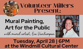 The Volunteer Millers at Fulton’s Windmill Area will host mural artist Eve Van Kampen for a program on her work…