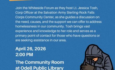 The Whiteside Forum will host Lt. Jessica Tosh on Sunday April 26th to address the topic of “Homelessness.” Jessica serves…