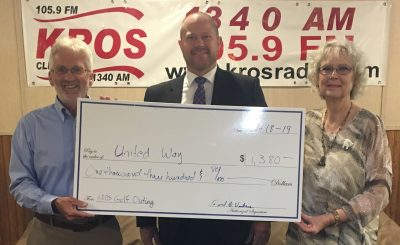 Image: KROS raised $1,380 for the United Way in the annual UW Fundraiser Golf Out. KROS’s Gary Determan presenting the…