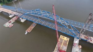 Bob Younie, maintenance director for the Iowa Department of Transportation, says the $80 million main channel bridge is almost done, but a smaller bridge on the Iowa side is having foundation trouble and needs to be rebuilt.