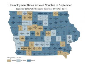 Figures from the Iowa Workforce Development Agency show the unemployment rate in Clinton County was 3.5% in September compared to 4% in August. In September 2018 the county unemployment rate was 1.8%