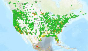 The first time you log in, you’ll see a map of North America, with a series of green, yellow, orange and red dots stretching across Canada, the U.S. and Mexico.