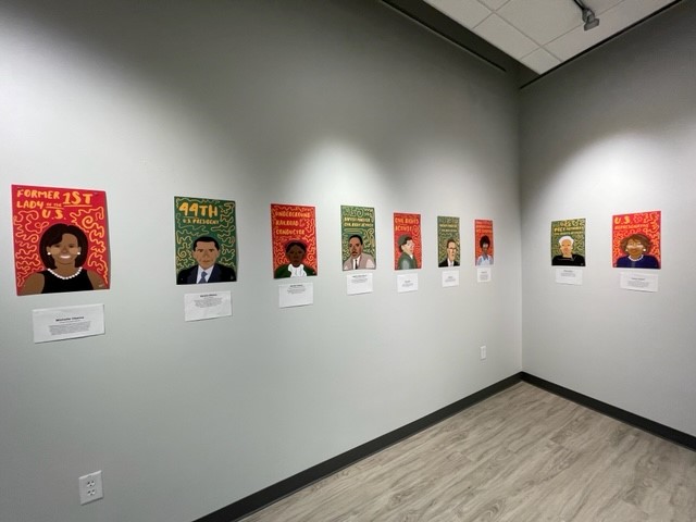 CCC President Dr. Brian Kelly commented, “We are honored to display Hayley’s exciting artwork in our gallery. Hayley’s work is engaging, locally connected, and opens the door to future exploration. It encourages viewers to explore the many influential leaders portrayed.”