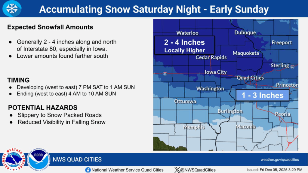 * WHAT…Snow expected. Total snow accumulations between 2 and 4