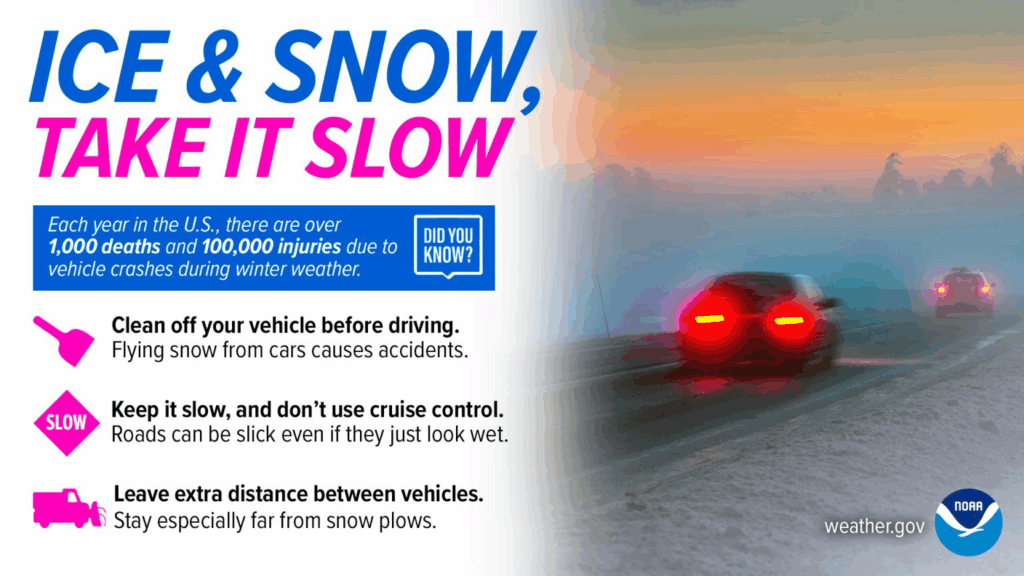 Slow down and use caution while traveling. In Iowa, the latest road
