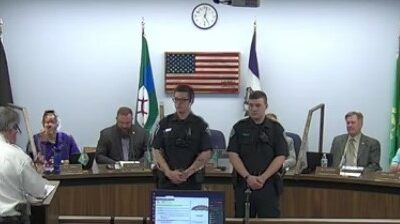 Clinton Police Chief introduced the new officers (in the front of the council in the image) Austin Witt (L in…
